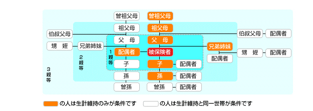 配偶者(内縁を含む)・子・孫・兄姉弟妹・父母等直系尊属